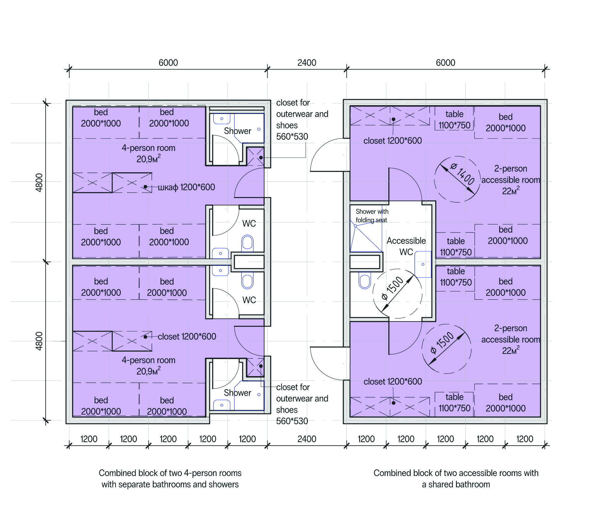 Detailed layouts have been developed for the residential units of the primary and secondary school boarding facilities, as well as for rooms designed for persons with reduced mobility.