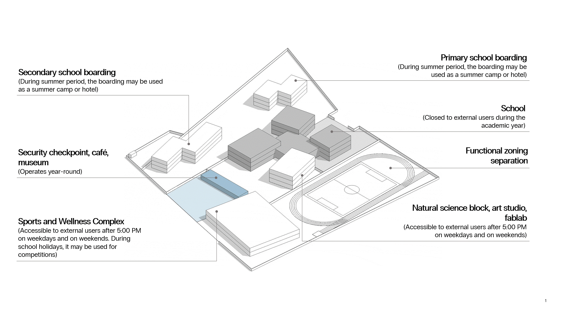 The meta-idea of the project defines it as a next-generation educational environment. It is not merely a boarding school, but a comprehensive ecosystem in which architecture and pedagogy are unified.