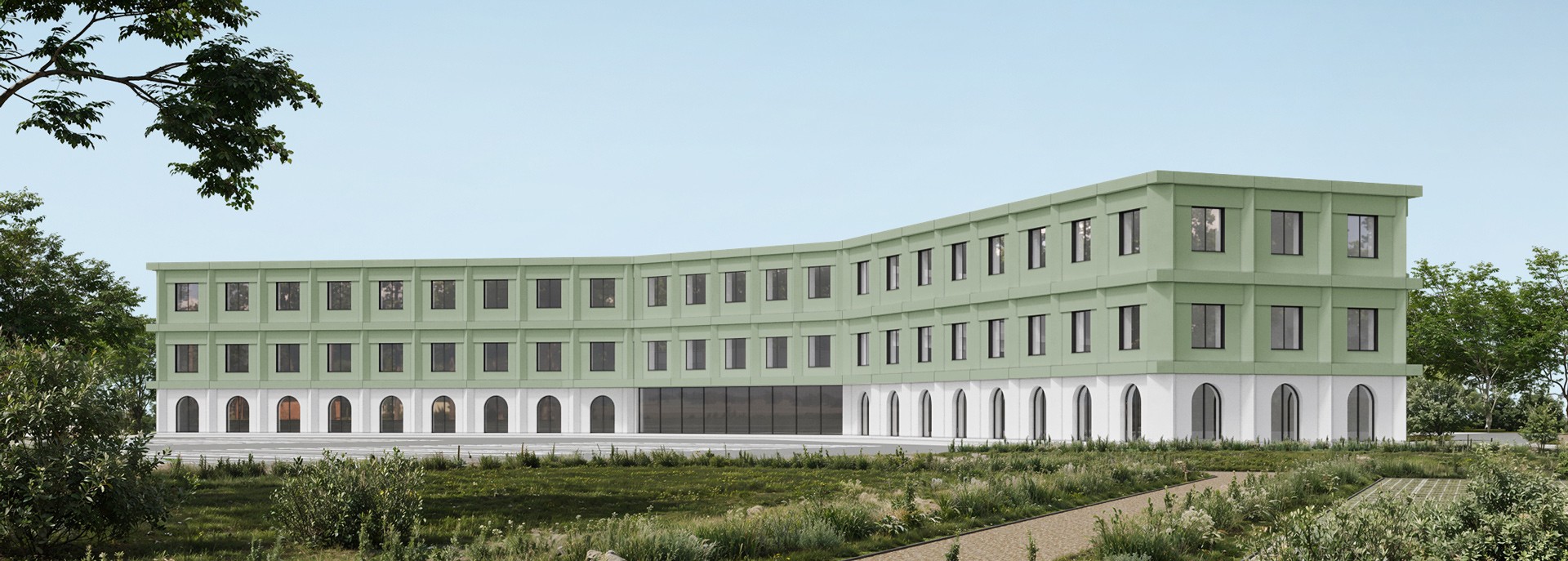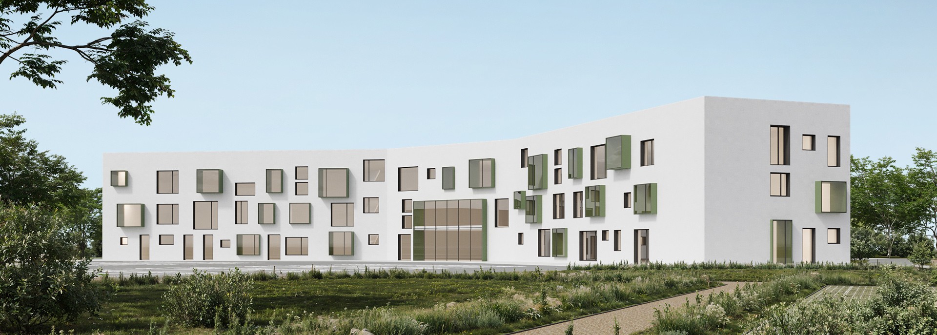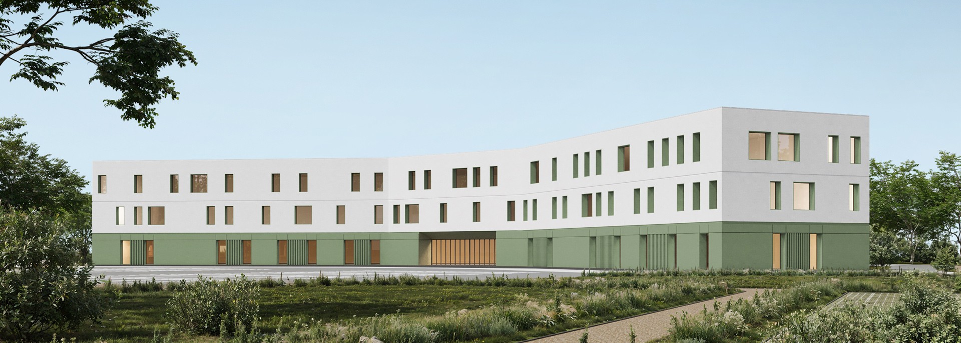 When developing façade solutions for the school within a campus designed for 400 students, we proposed several options that create a distinctive visual identity for the campus and can be easily extended to other buildings within the complex.