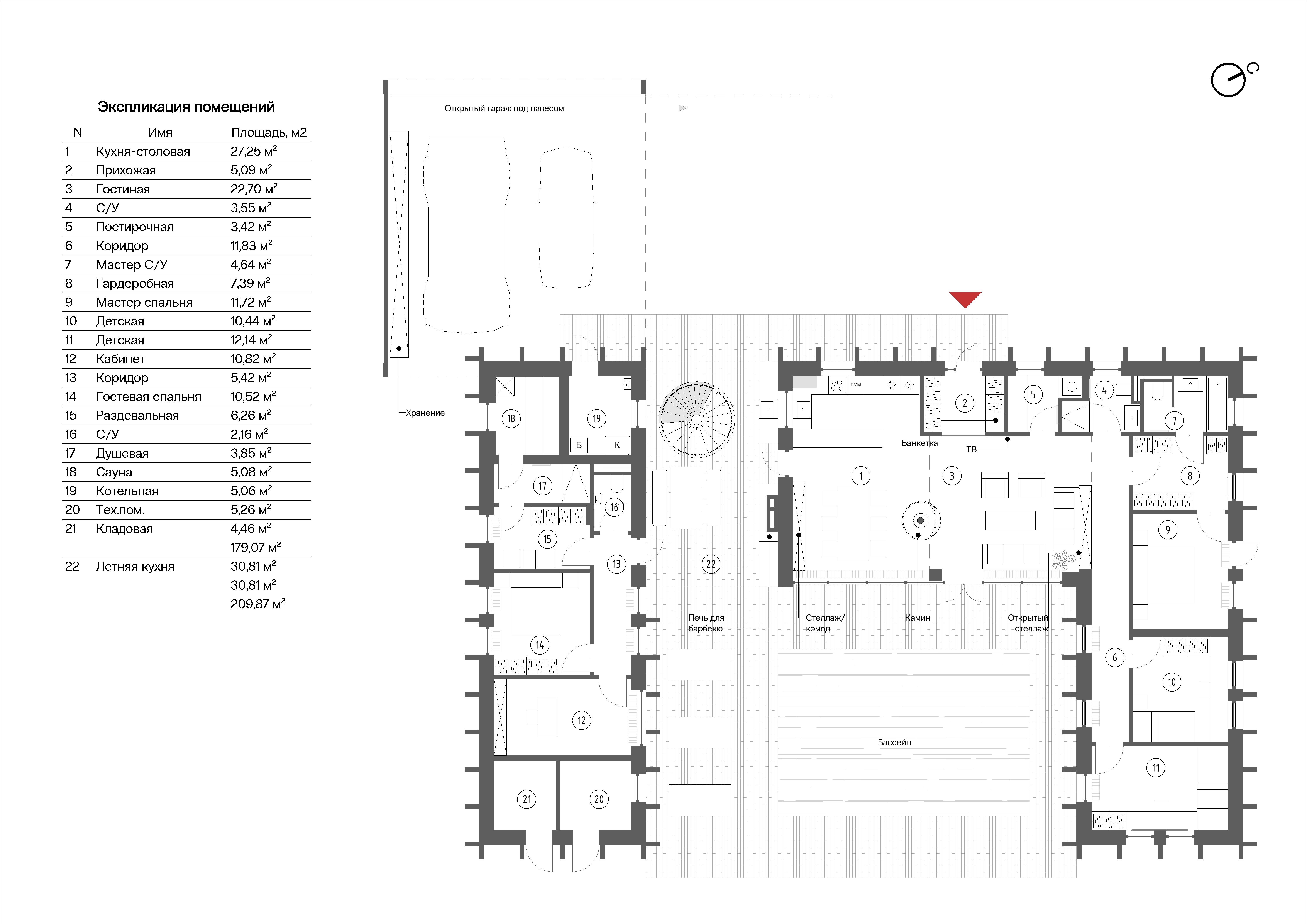 Несмотря на сложную форму, дом остаётся рациональным в строительстве и эксплуатации. Планировка выстроена вокруг повседневных сценариев жизни как внутри дома, так и снаружи.