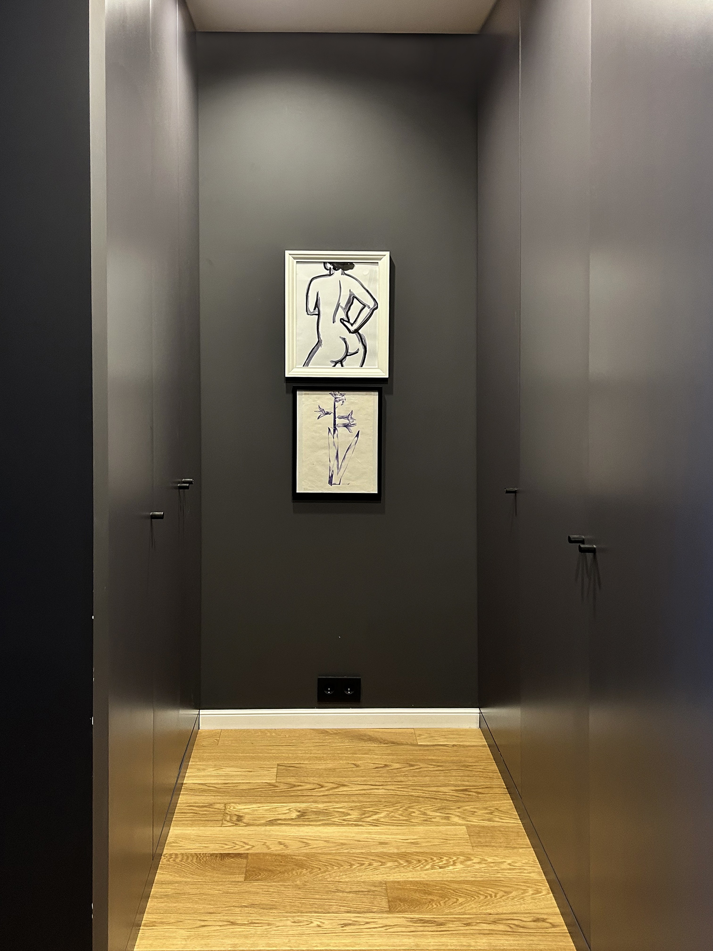 Эта небольшая квартира — пример того, как продуманность до мелочей превращает каждый квадратный метр в комфортное и функциональное пространство. С порога вас встречает аккуратная прихожая с встроенным шкафом для верхней одежды, большим зеркалом и удобной скамейкой для переобувания — здесь легко настроиться на домашний ритм и оставить уличную суету за дверью. Из нее можно попасть в небольшой, но функциональный санузел.