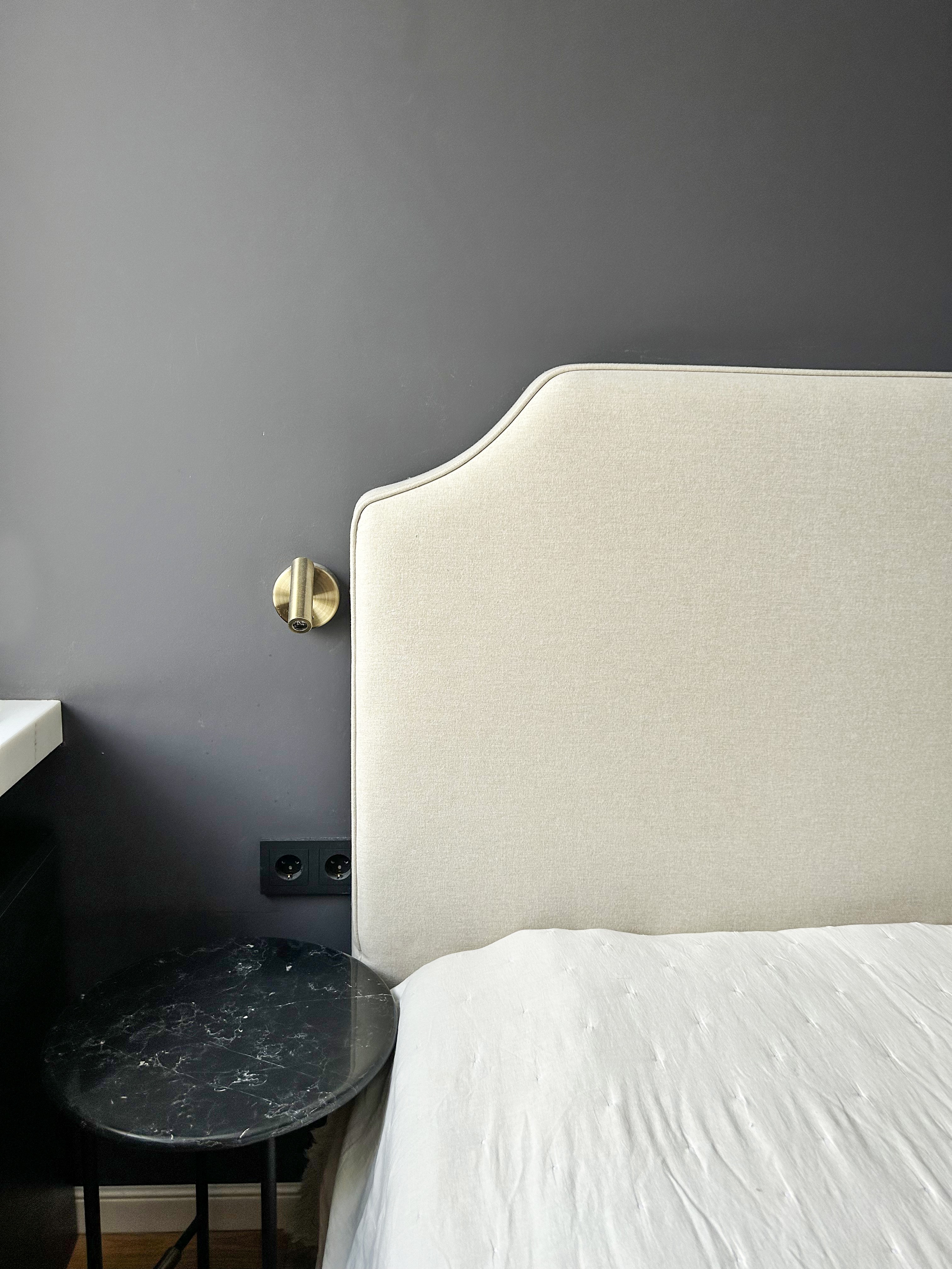 Спальня небольшая, но очень уютная, с дополнительным рабочим местом. В сочетании с рабочим местом в гостиной это позволяет двум людям комфортно и сосредоточенно трудиться, не мешая друг другу.