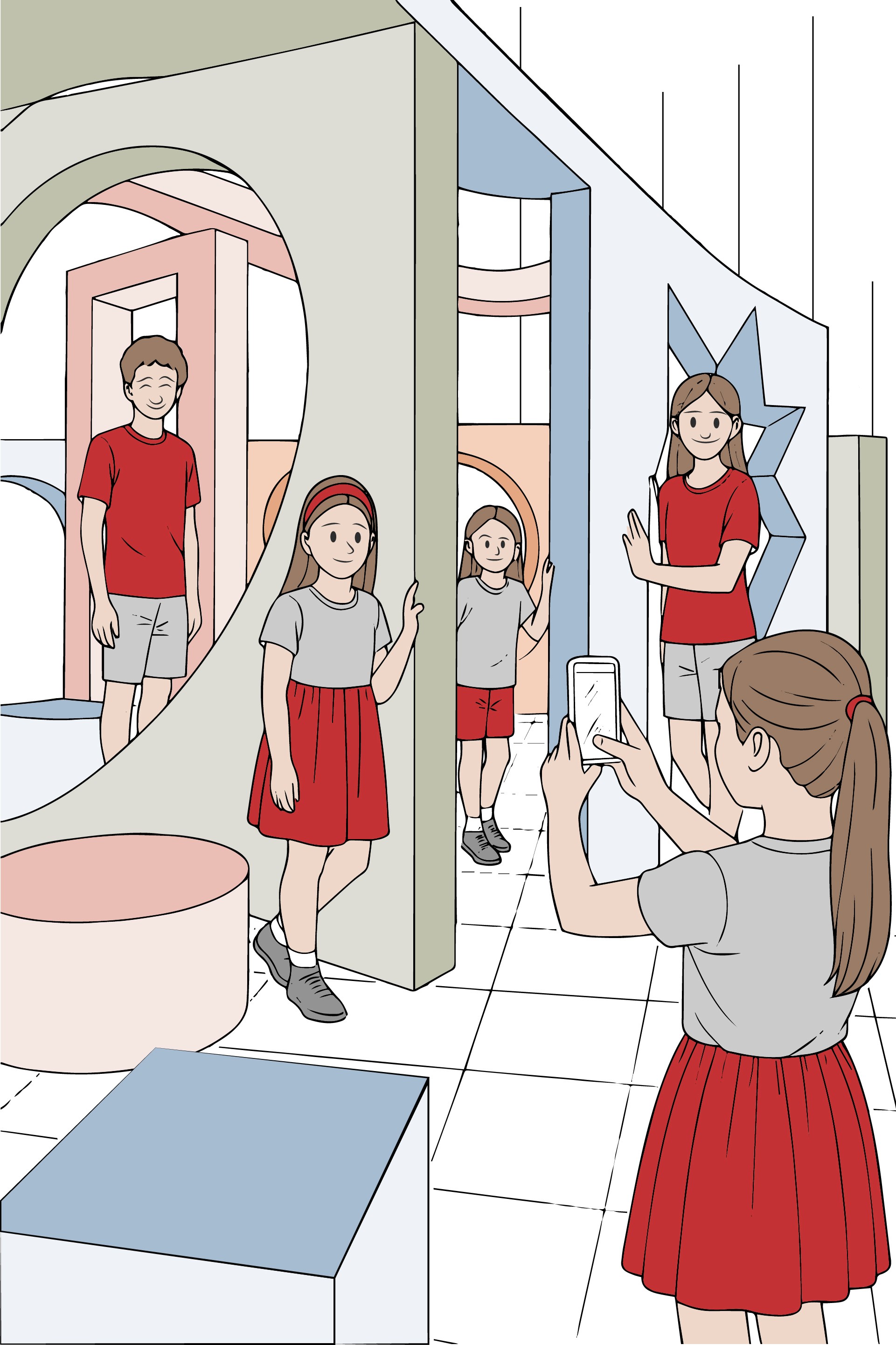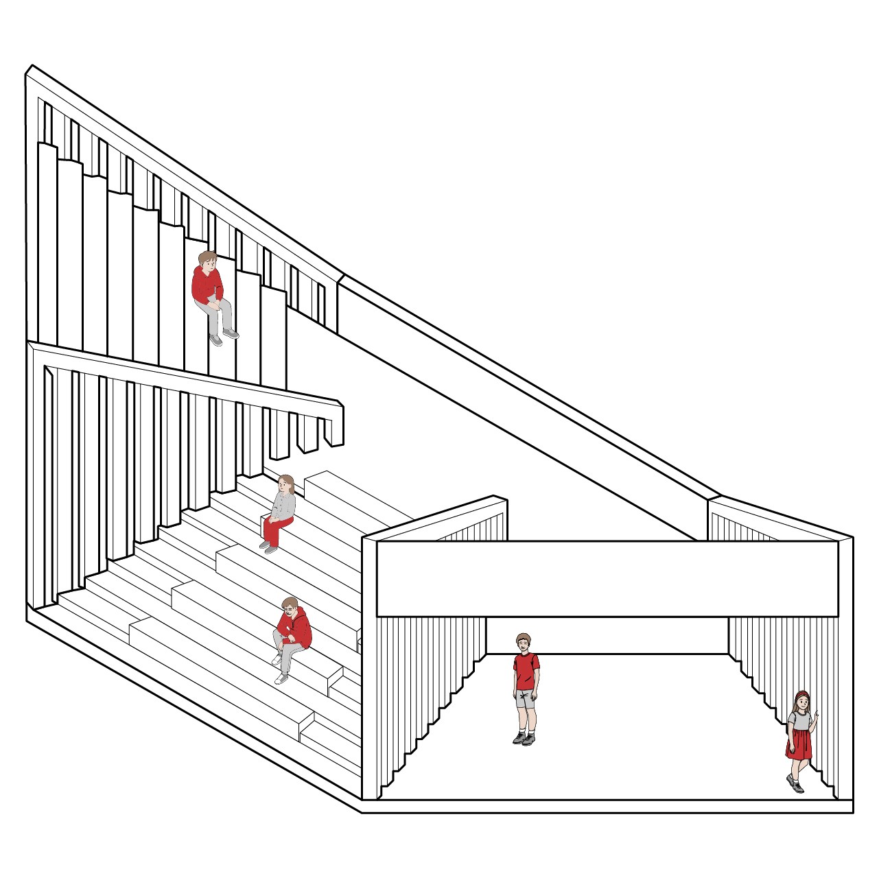 Мы взяли за основу принцип гармошки (ручная гармоника) и переложили его на здание/территорию школы.